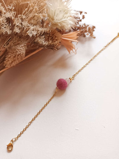 Gold-plated mother-of-pearl and pink felted wool bracelet