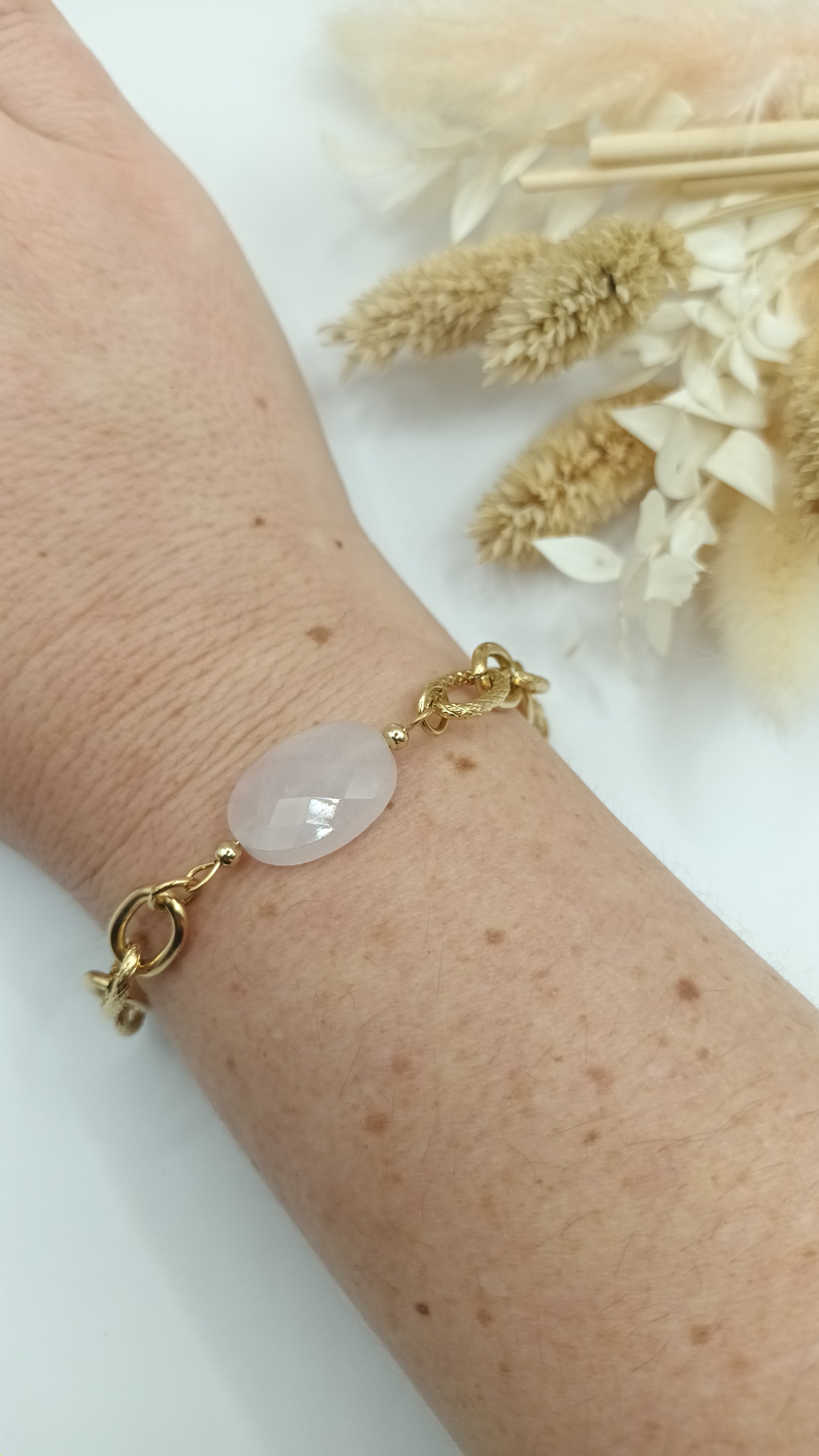 Bracelet maille ovale - Quartz Rose