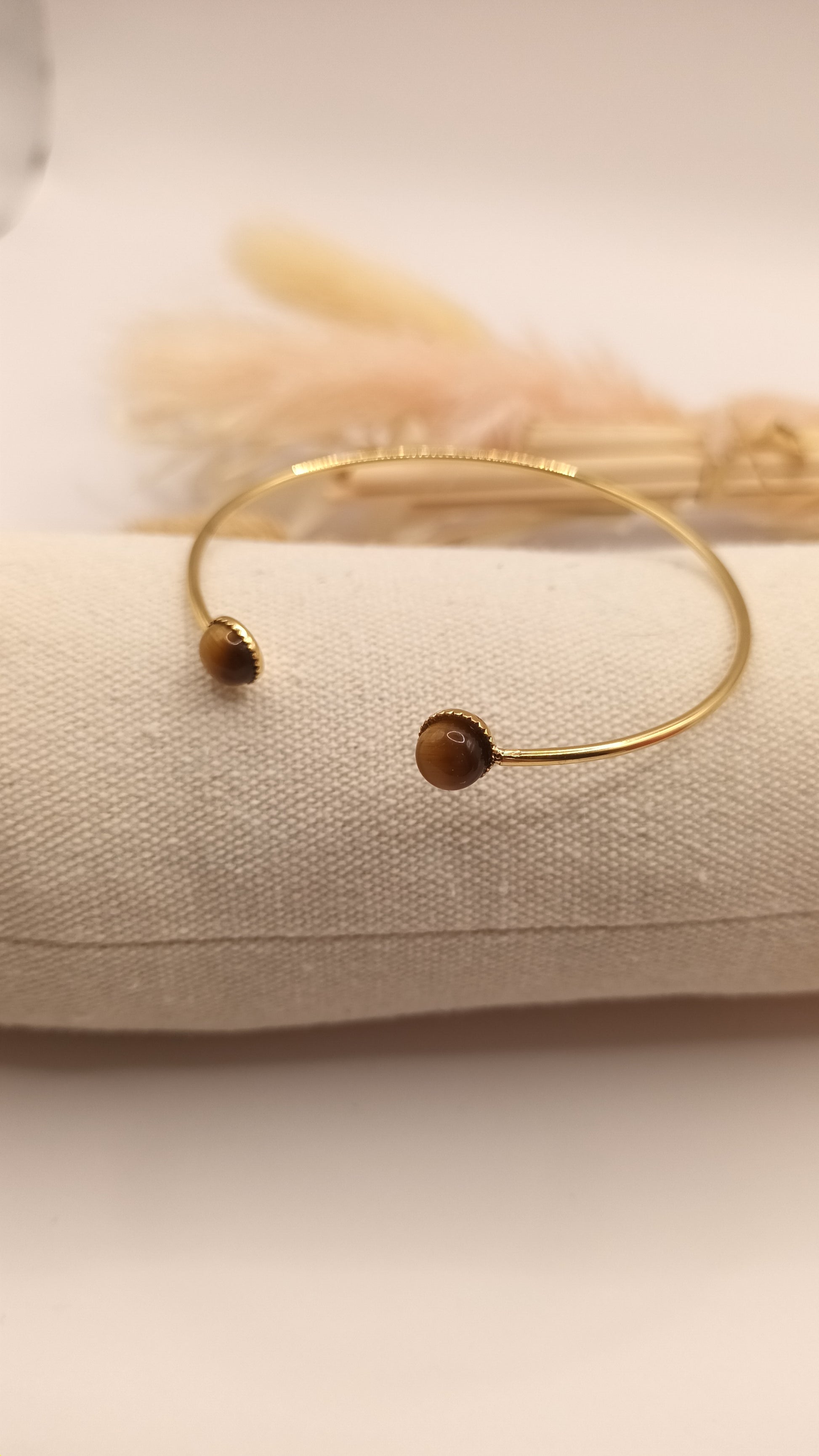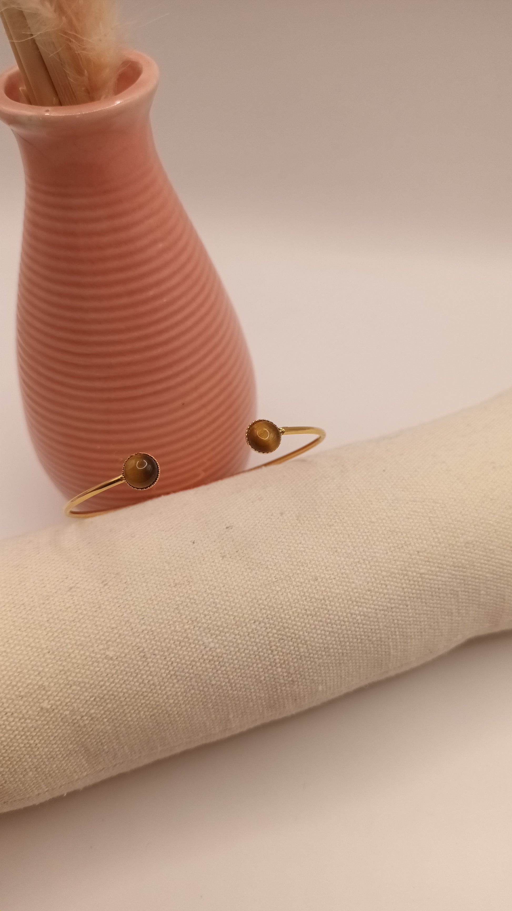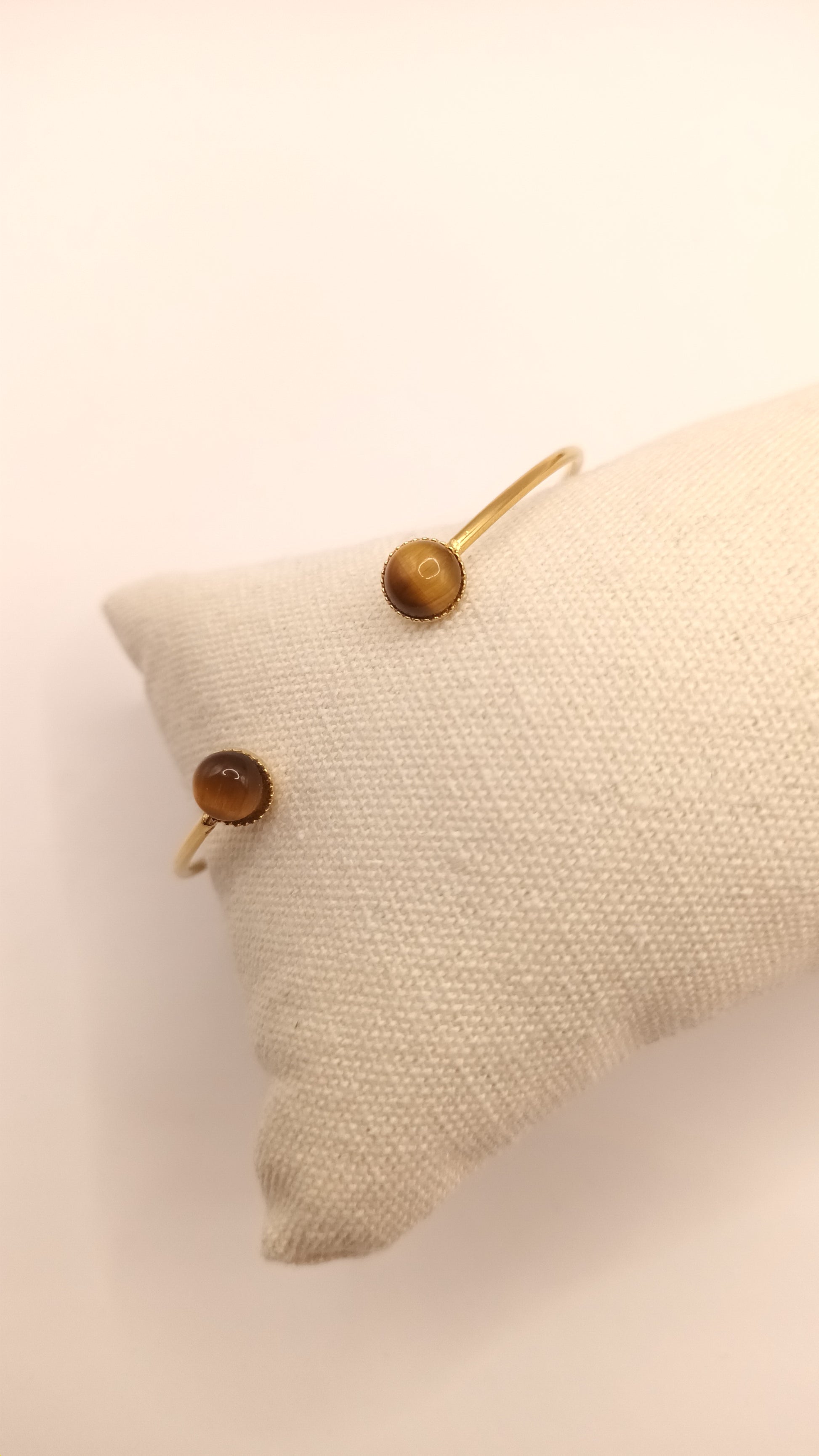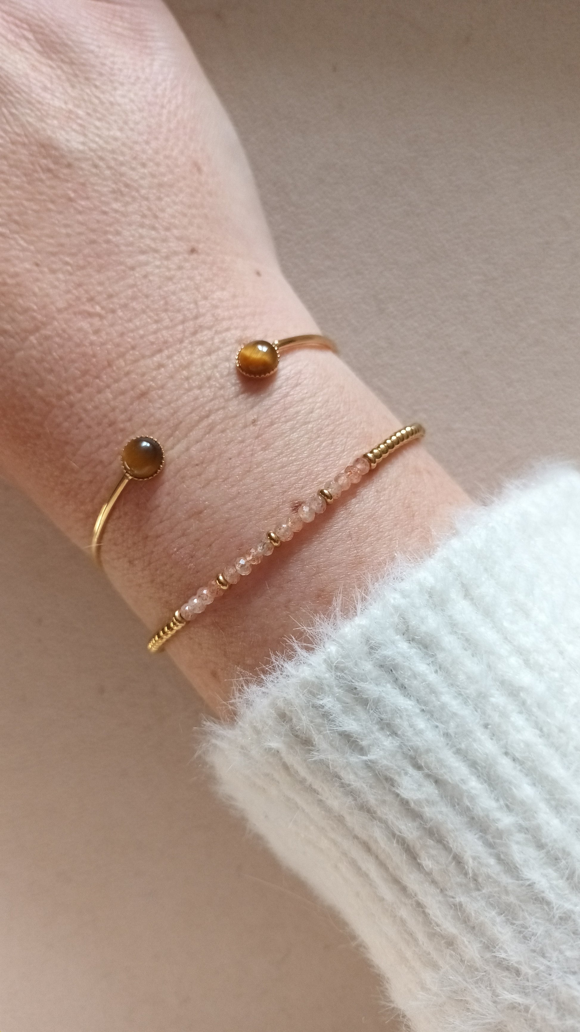 Bracelet jonc avec 2 pierres rondes de nacre réglable femme et pierre fine discret et intemporel!