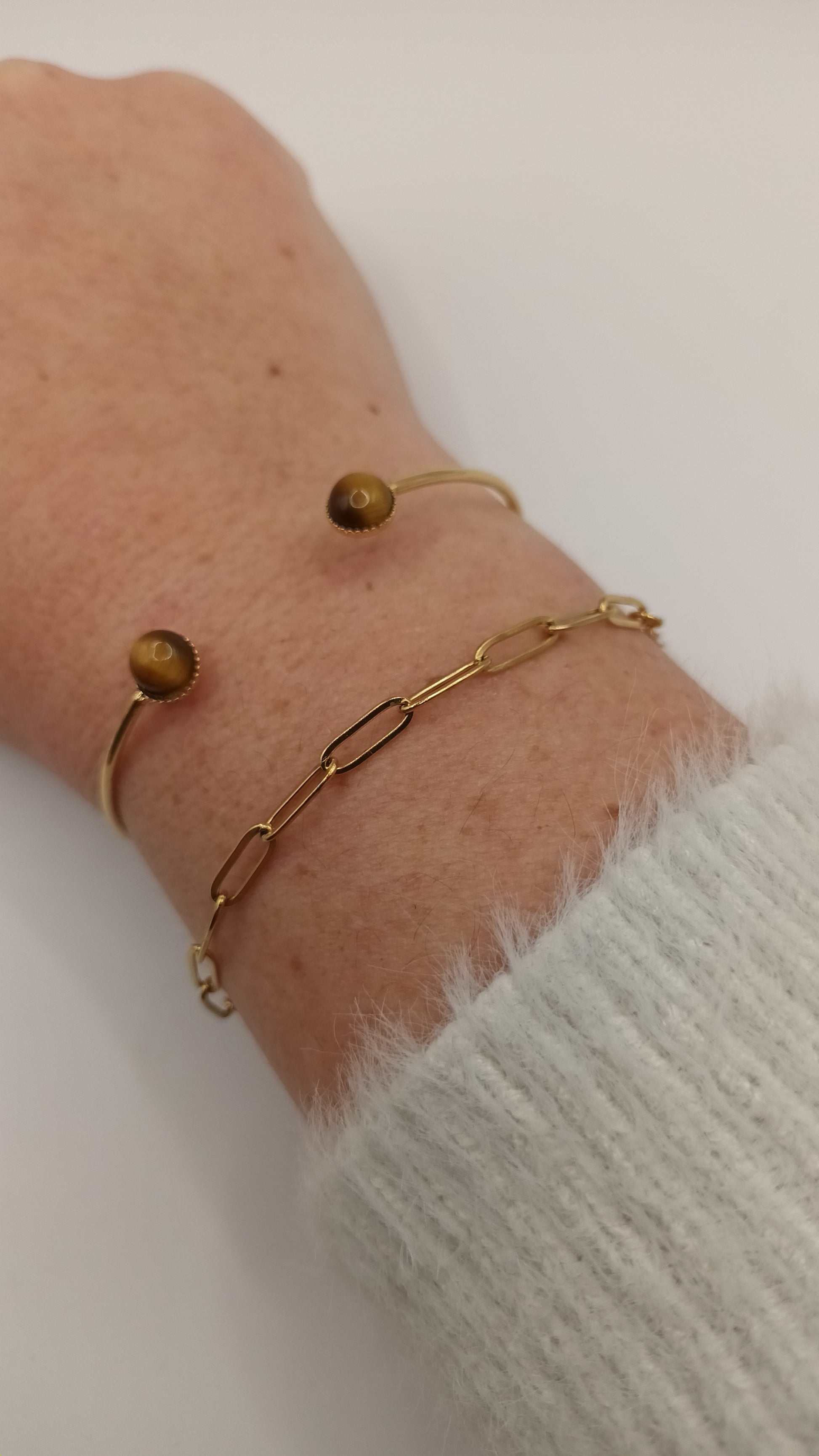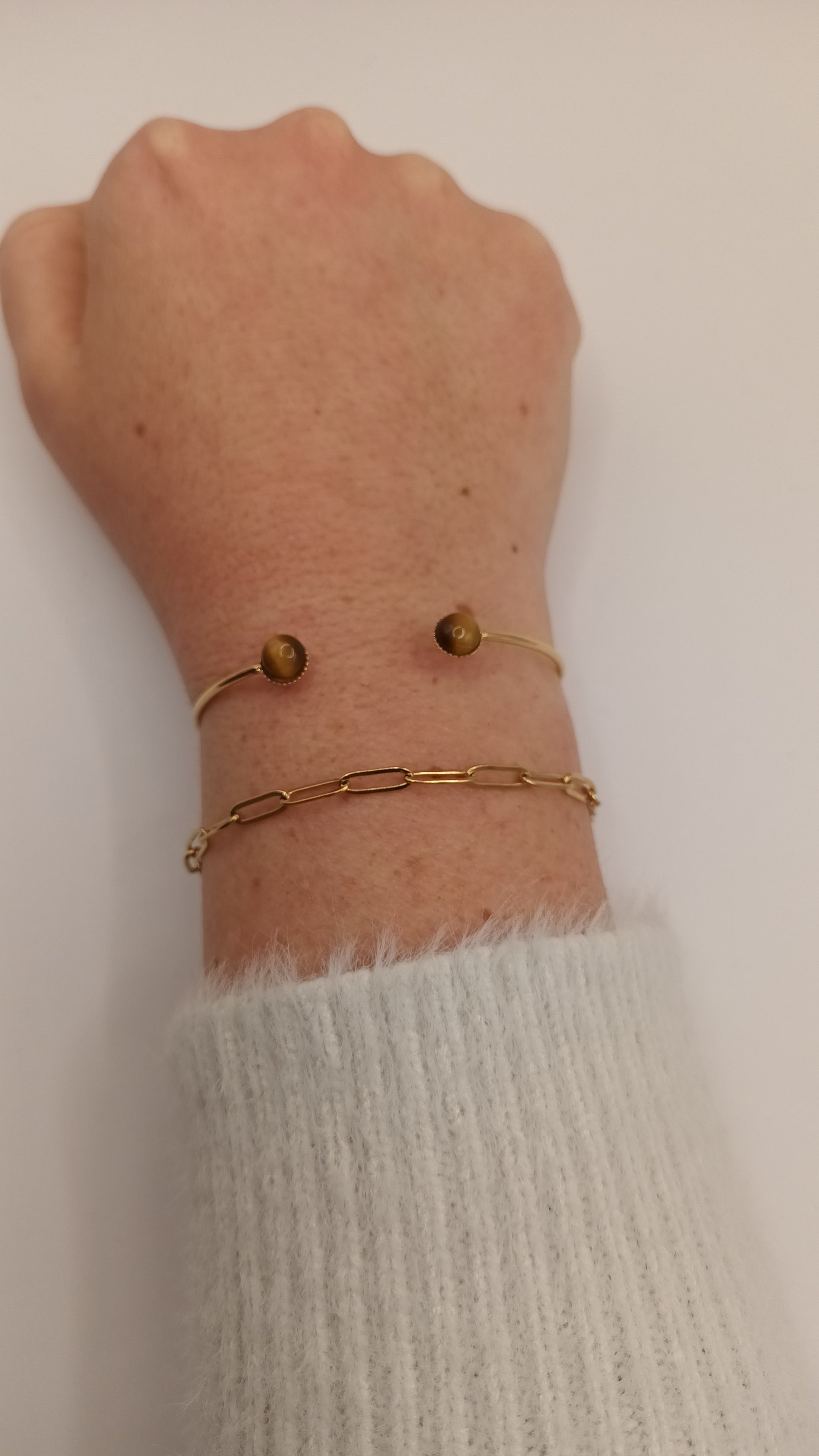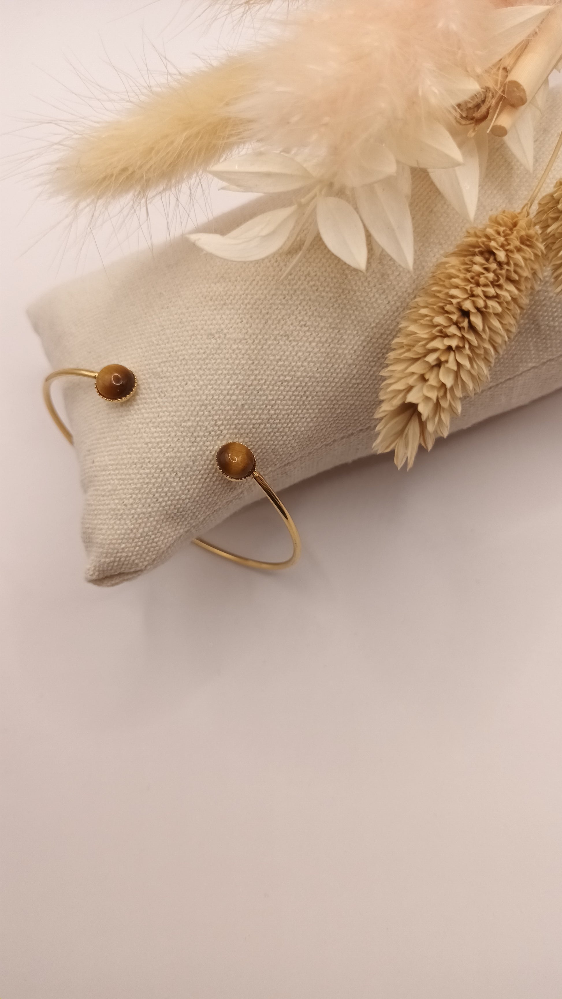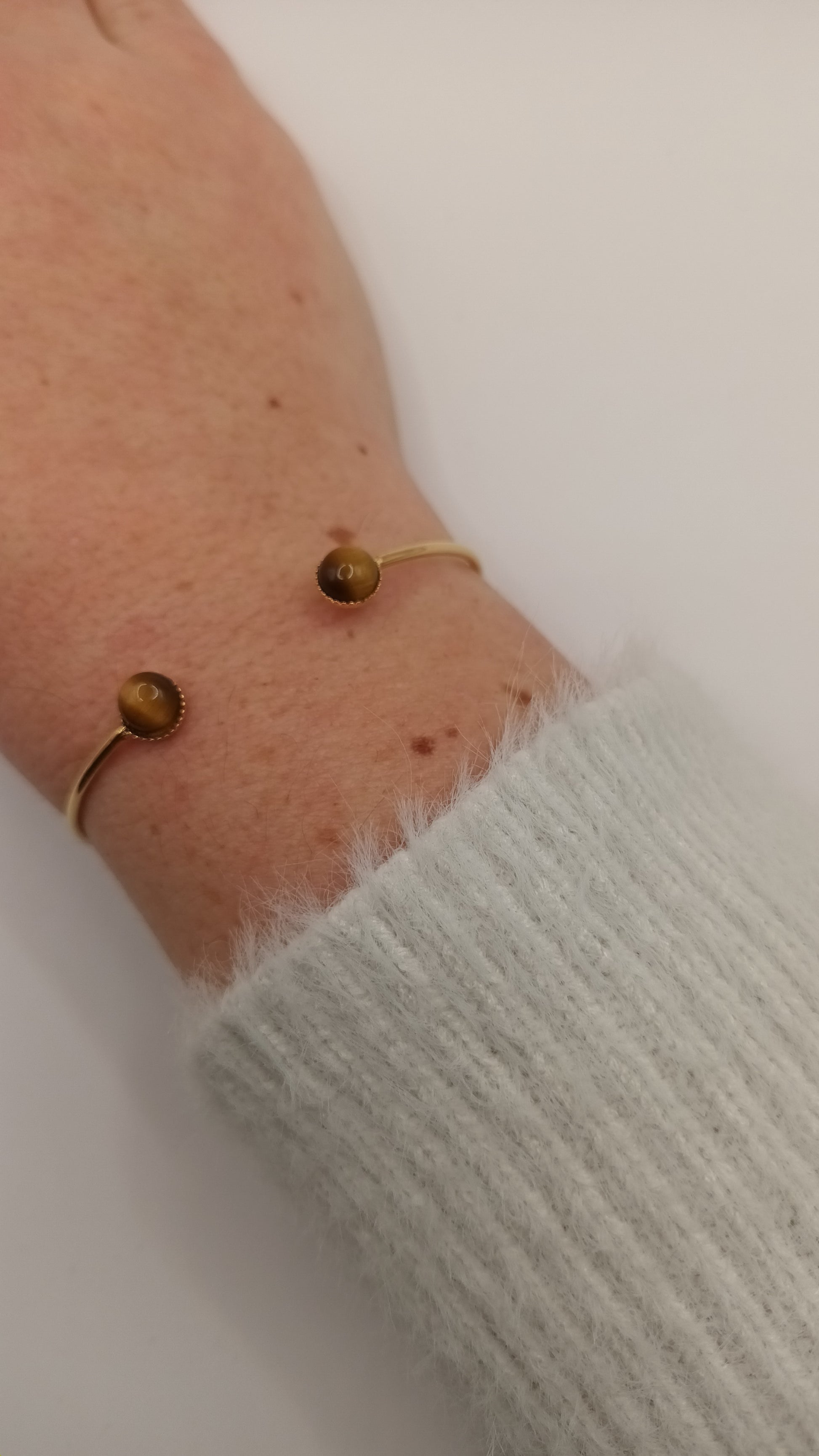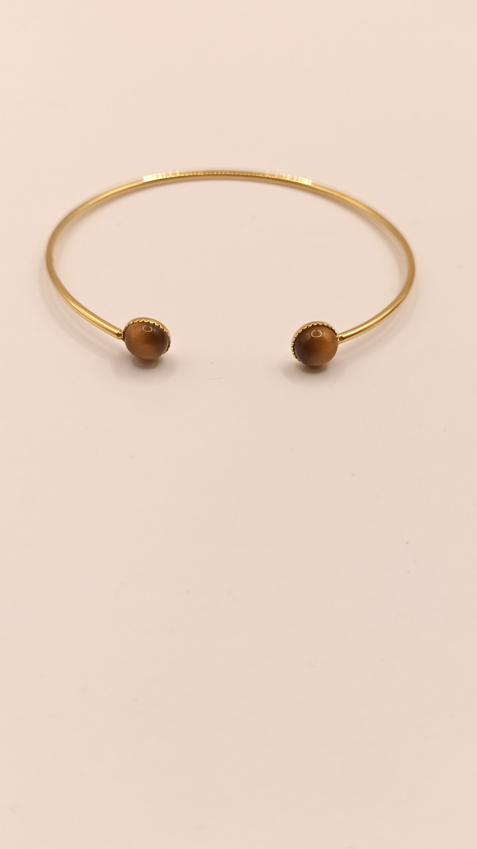 Bracelet jonc avec 2 pierres rondes de nacre réglable femme et pierre fine discret et intemporel!