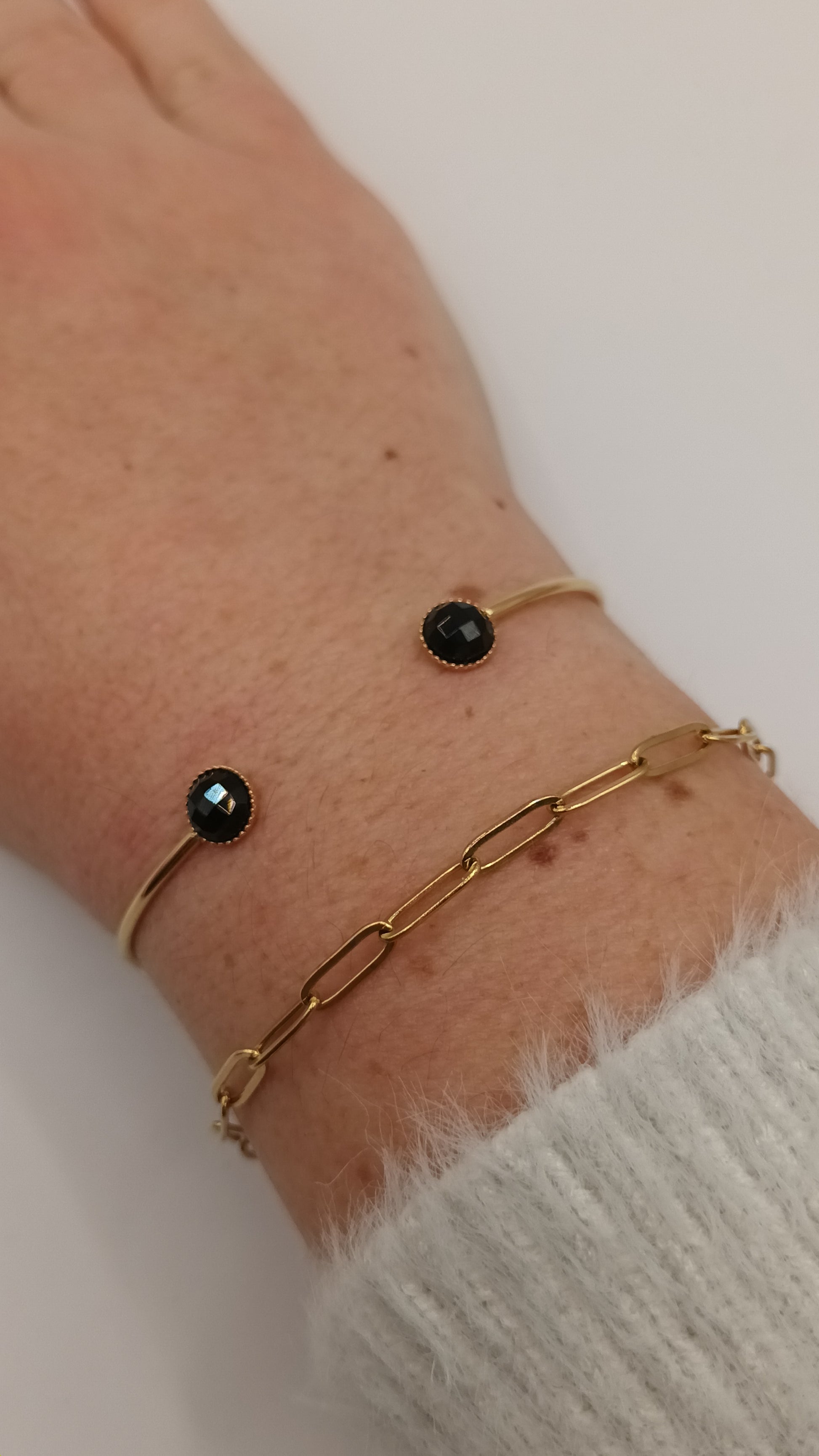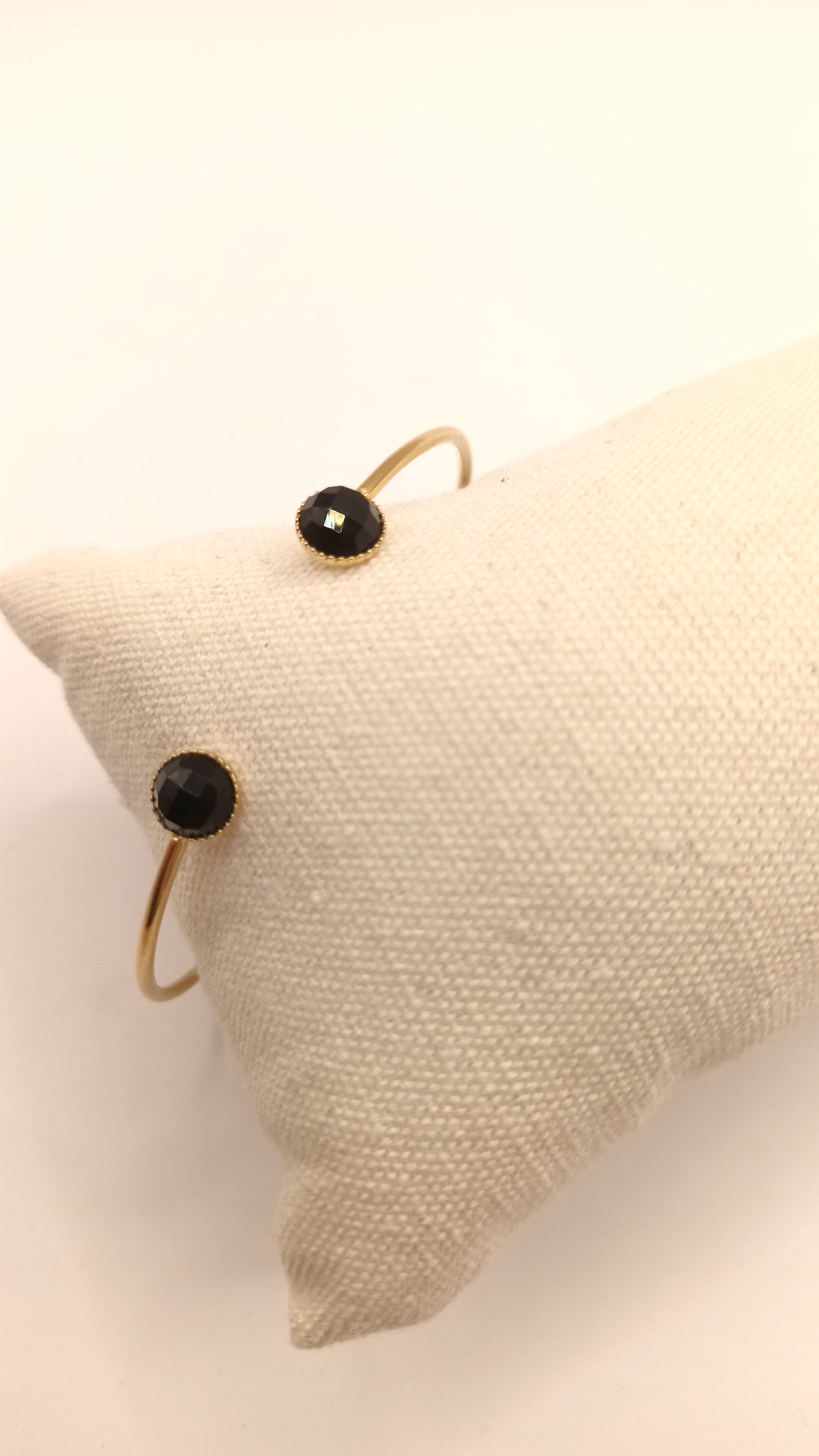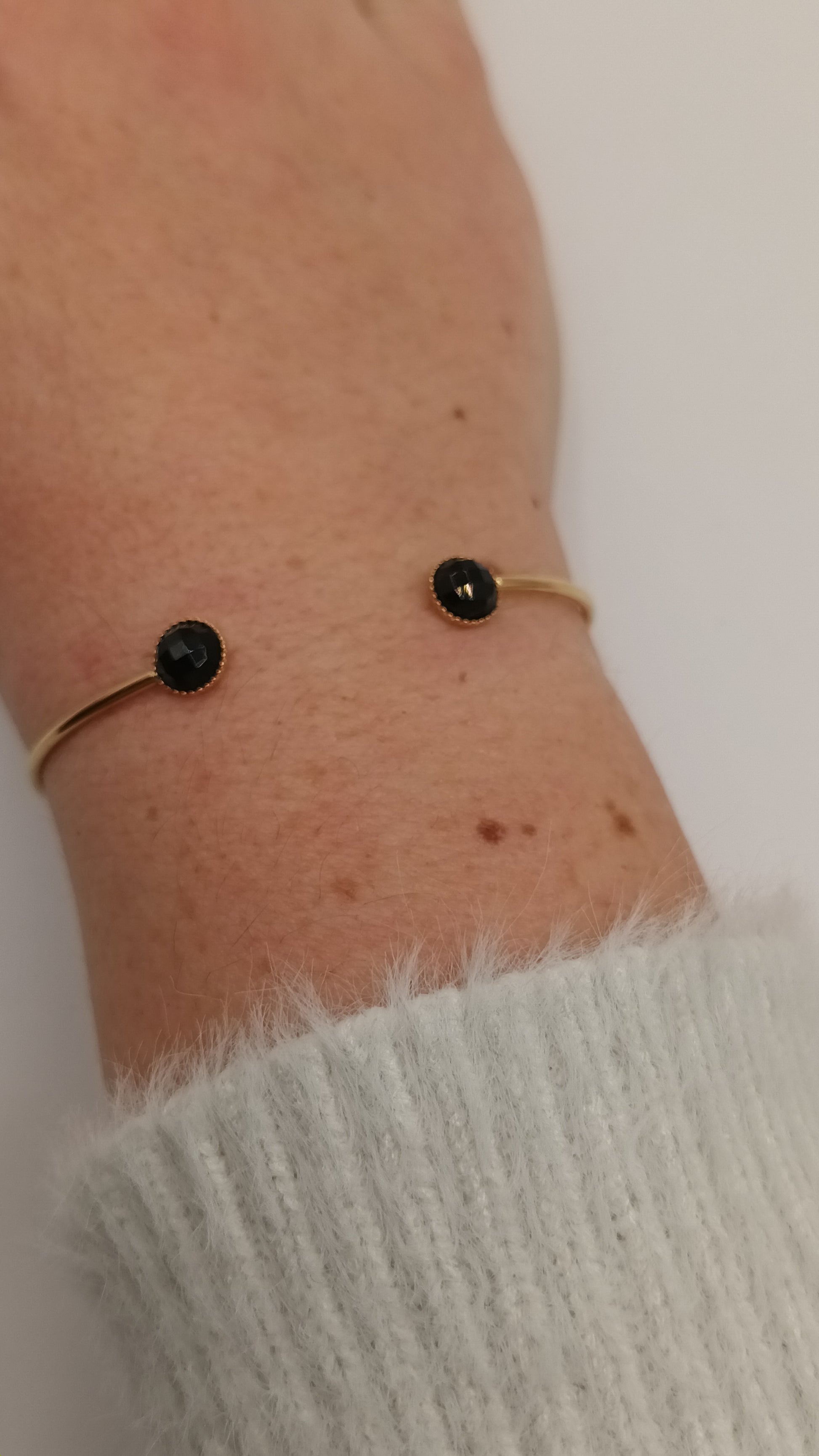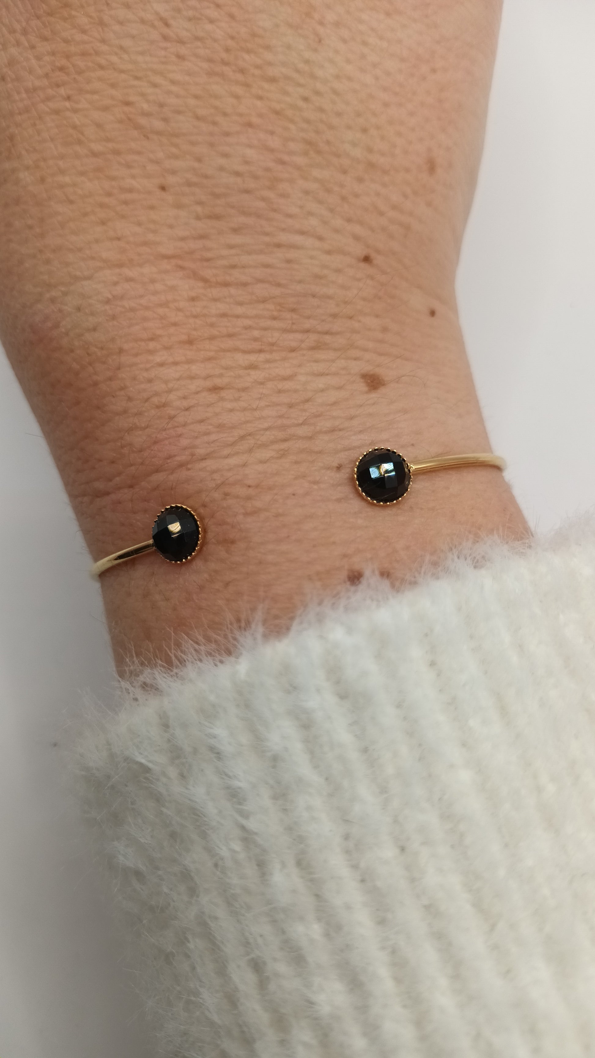 Bracelet jonc avec 2 pierres rondes de nacre réglable femme et pierre fine discret et intemporel!